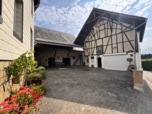 Das Anwesen verfügt über einen großzügigen Innenhof mit mehreren Garagen und Stellplätzen. Mehrere Scheunen bieten reichlich Platz – ideal für die Unterbringung eines Wohnmobils, für Hobbys, Werkstatt oder als vielseitige Abstellmöglichkeiten.